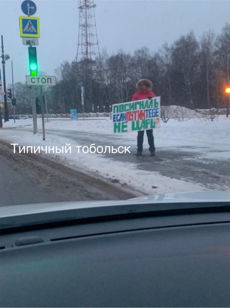 Полиция в Тобольске задержала активиста КПРФ Артема Куцуна, который участвовал в серии одиночных пикетов против поправок в Конституцию и держал плакат с надписью «Посигналь, если Путин тебе не царь!». Об этом ОВД-Инфо сообщил депутат Тюменской областной думы Юрий Юхневич.