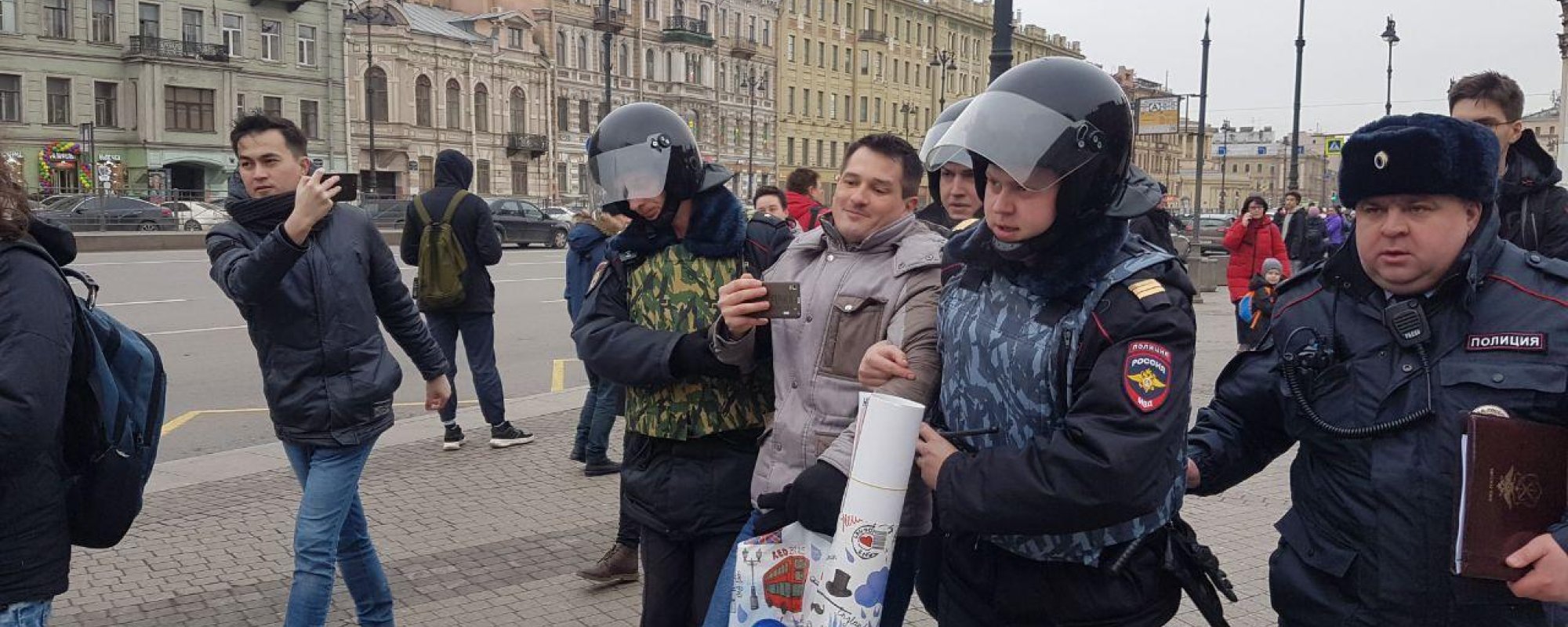 Всего на акции в Санкт-Петербурге, по нашим данным, задержали 16 человек. Одного, Асана Мумджи, отпустили достаточно быстро как ошибочно задержанного. Активиста Евгения Мусина не стали задерживать в больнице — под обязательство о явке в 35-й отдел полиции. Восемь человек отпустили из 1-го отдела полиции с протоколами о доставлении и изъятии плакатов (Павел Чупрунов, Владислав-Клинтон Баранов, Павел Иванкин, Дмитрий Скурихин, Али Хантемиров, Марина Чупракова, Дмитрий Негодин, Марина Кен). Шесть человек доставили в 78-й отдел полиции, их отпустили поздно ночью. Причем муниципального депутата Сергея Лазарева сначала около 5 часов держали в холодном автозаке у 1-го ОП и только потом привезли в 78-й.