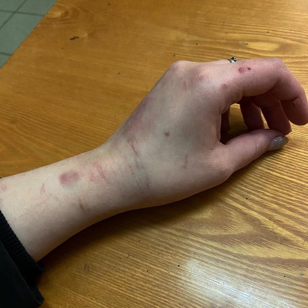 Олейникова после выхода из ОВД отправилась в больницу зафиксировать травмы от действий полицейских: по ее словам, уже в ОВД к ней применили физическую силу, надели наручники, при этом повредив руку.