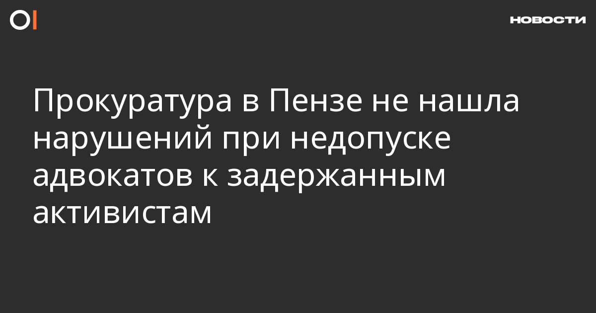 Прокуратура Железнодорожного района Пензы не нашла нарушений в действиях сотрудников полиции, которые не пустили адвокатов к задержанным участникам группы поддержки фигурантов дела «Сети». Об этом сообщает издание «7×7», со ссылкой на адвоката Станислава Фоменко.