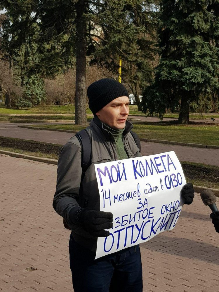 Преподаватель Михаил Лобанов, как рассказала звонившая, намеревался только сфотографироваться с плакатом, на котором были написаны слова поддержки Мифтахову. Однако полицейские задержали Лобанова сразу же, как тот встал с плакатом.