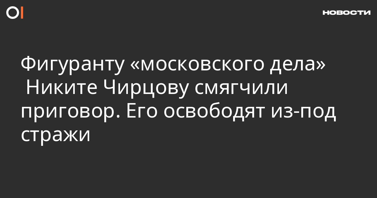 Московский городской суд постановил смягчить наказание фигуранту «московского дела» Никите Чирцову до 11 месяцев колонии. Его должны освободить из-под стражи. Об этом сообщает адвокат Александр Борков, который представлял Чирцова от имени ОВД-Инфо в суде.