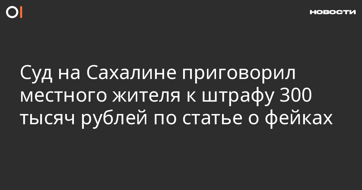 Южно-Сахалинский городской суд приговорил жителя Сахалина к штрафу 300 тысяч рублей по статье о распространении заведомо недостоверной информации о методах борьбы с коронавирусом (ст. 207.1 УК). Об этом сообщает «Интерфакс» со ссылкой на пресс-службу Генпрокуратуры России.