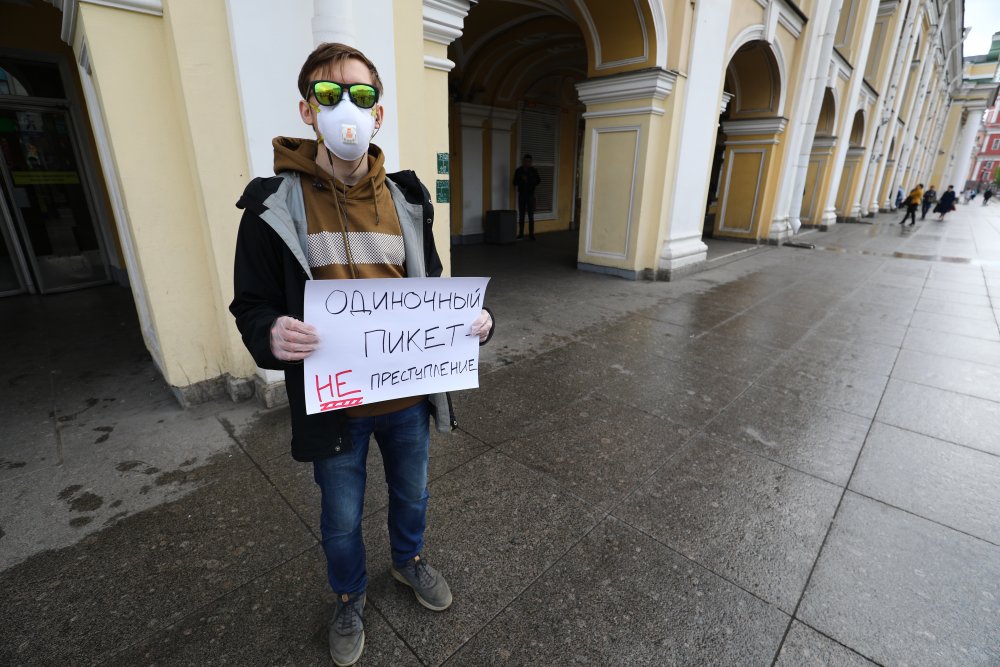 Любимов стоял с плакатом «Одиночный пикет НЕ преступление».