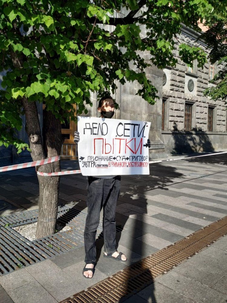 В Москве полицейские задержали активиста движения «Гражданское общество» Петра Друзяку из-за одиночного пикета возле здания ФСБ в поддержку фигурантов дела «Сети». Об этом ОВД-Инфо сообщил сам Друзяка.