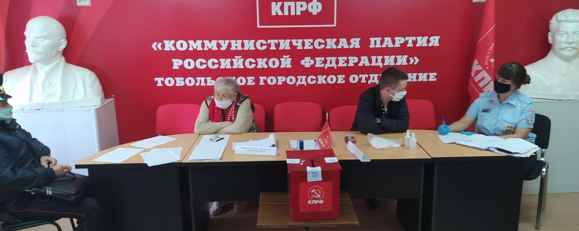 Силовики взяли объяснение у депутата Тюменской областной Думы и первого секретаря Тобольского горкома КПРФ Юрия Юхневича и участников комиссии по альтернативному голосованию, а также проверили в наличии средства индивидуальной защиты.