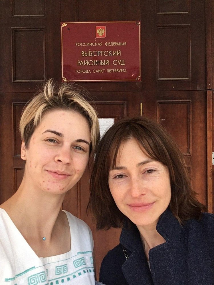 Анна Фомина (слева) и Яна Мкртчян возле здания суда / фото: Анна Фомина