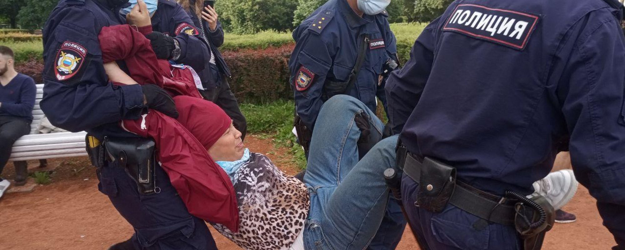 На задержанную составили протоколы по статье о неисполнении требования полицейского (ч. 1 ст. 19.3 КоАП) и нарушении требований, направленных на обеспечение режима повышенной готовности (ст. 8.6.1 КоАП Петербурга).