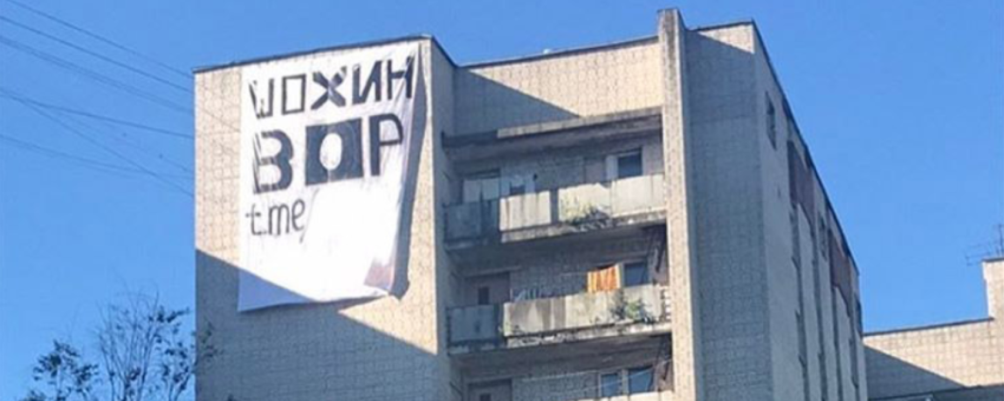 В ночь на 10 июля неизвестные повесили на одной из многоэтажек на улице Тракторная баннер «Шохин — вор».