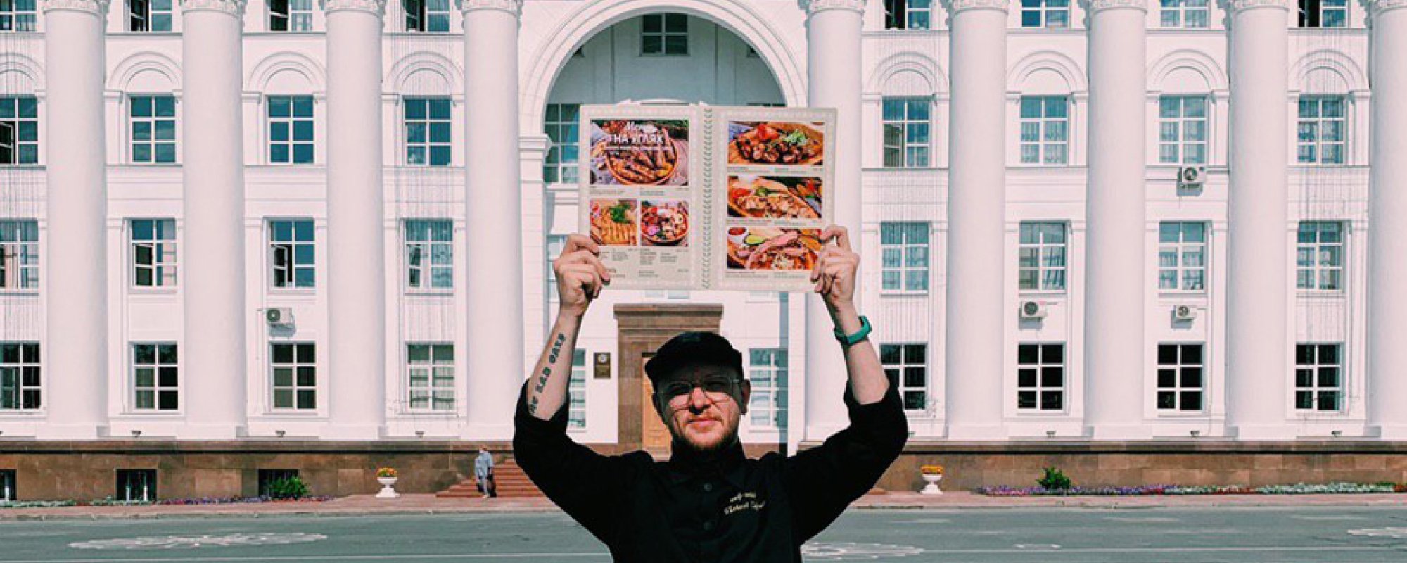 Сергей Павлов — шеф-повар ресторана «Хмели-картвели», он вышел на одиночный пикет к зданию областного правительства с меню в качестве плаката. Вскоре его задержали полицейские и решили составить протокол.