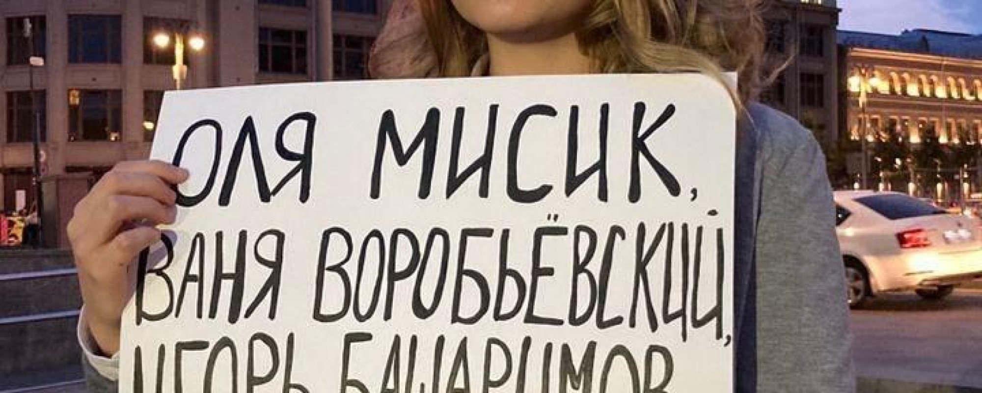 Щетинина вышла на акцию в поддержку активистов «бессрочного протеста», против которых завели дело о вандализме. Полицейские прервали пикет и отвели девушку в ОП по району Китай-город. Ей вменяют статью о нарушении «режима повышенной готовности» (ст. 20.6.1 КоАП).