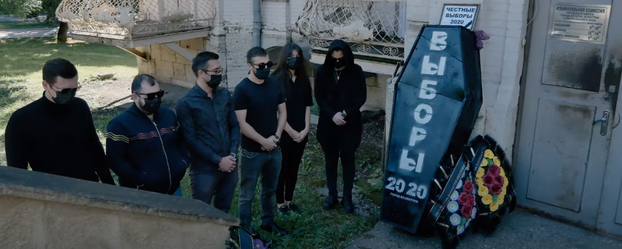 Акция состоялась 24 августа. Несколько активистов в черной одежде и защитных масках принесли к зданию избиркома бутафорский гроб и траурные венки с надписями, оплакивающими «смерть» грядущих выборов в городскую думу. Суд признал Алана Дзугаева и Богдана Авагимова виновными в проведении публичного мероприятия без подачи уведомления (ч. 2 ст. 20.2 КоАП). При этом избирательная комиссия обратилась с просьбой проверить действия активистов на предмет нарушения уголовного законодательства сразу в несколько инстанций: к главам городской прокуратуры и отделения МВД и главам региональных отделов ФСБ и Следственного комитета. О реакции данных структур на обращение ТИК на данный момент информации нет.