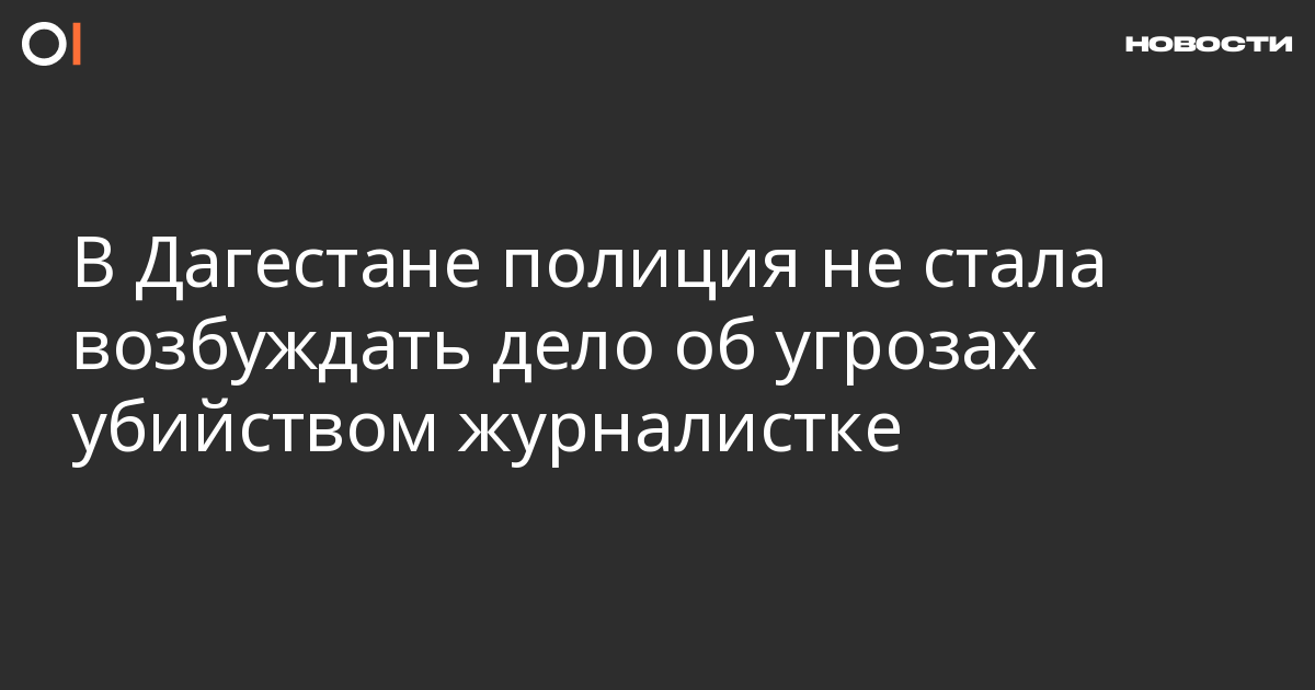 В Дагестане полиция отказалась возбуждать уголовное дело по следам угрозы убийством главному редактору портала «Даптар» Светлане Анохиной. Ей угрожал человек, представившийся родственником начальника отдела полиции. Об этом сообщает само издание.