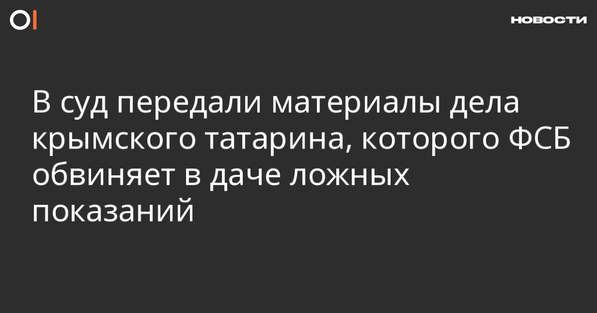 Прокуратура утвердила обвинительное заключение по уголовному делу о даче ложных показаний (ч. 1 ст. 307 УК) в отношении крымского татарина Руслана Бекирова. Материалы дела переданы в суд. Об этом сообщает движение «Крымская солидарность».