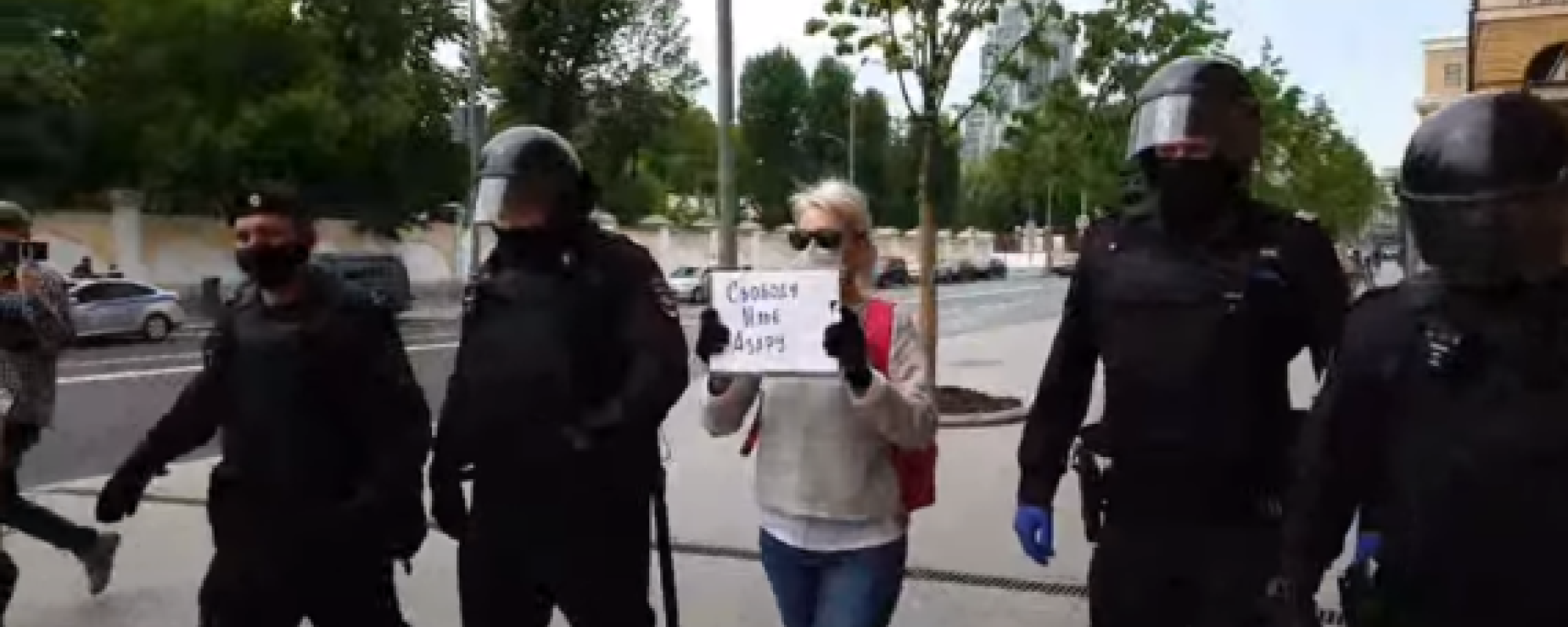 Ремизову задержали с одиночным пикетом с плакатом «Свободу Илье Азару» 30 мая у здания ГУ МВД на Петровке, 38