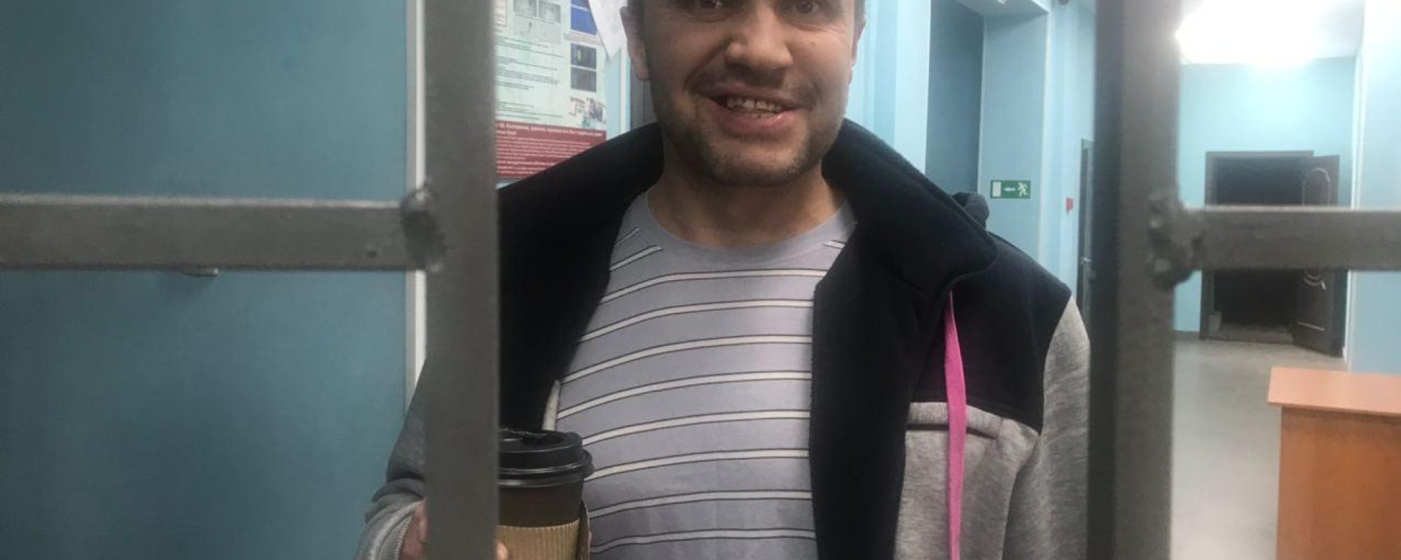 Меркулова привезли в отдел полиции № 4. Из-за участия в мирных акциях ему снова вменяют арестную статью об участии в несогласованном мероприятии, помешавшем работе инфраструктуры (ч. 6.1 ст. 20.2 КоАП).