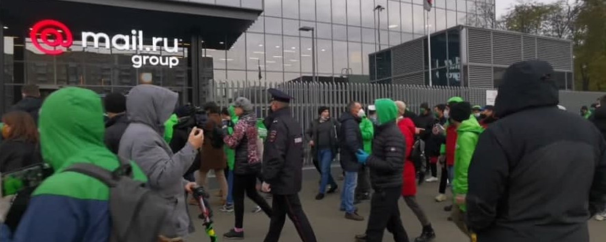 - В июле курьеры сервиса доставки еды Delivery Club также объявляли забастовку из-за несоразмерных штрафов, которые невозможно оспорить, и невыплаты зарплаты: некоторые не получают никаких выплат с мая. 9 июля они провели акцию в Москве недалеко от офиса Mail.ru. Полиция задержала участников одиночных пикетов, которые вышли на акцию в поддержку курьеров.