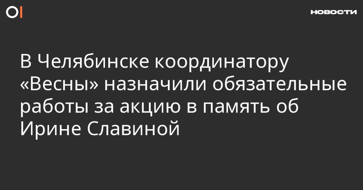 В Челябинске координатору отделения молодежного движения «Весна» назначили 20 часов обязательных работ из-за акции в память об умершей журналистке Ирине Славиной. Об этом он сам сообщил ОВД-Инфо.