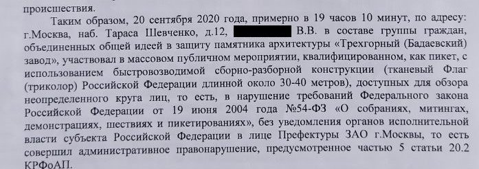 По мнению полиции и суда, Вячеслав и Виталий участвовали в несогласованном пикетировании с использованием быстровозводимой сборно-разборной конструкции в виде российского флага длиной около 30-40 метров.