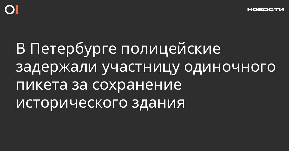 Полицейские в Петербурге задержали Светлану Ясинскую, участницу одиночного пикета за сохранение здания Всесоюзного научно-исследовательского института целлюлозно-бумажной промышленности, сообщает «Северо-Запад. МБХ медиа».