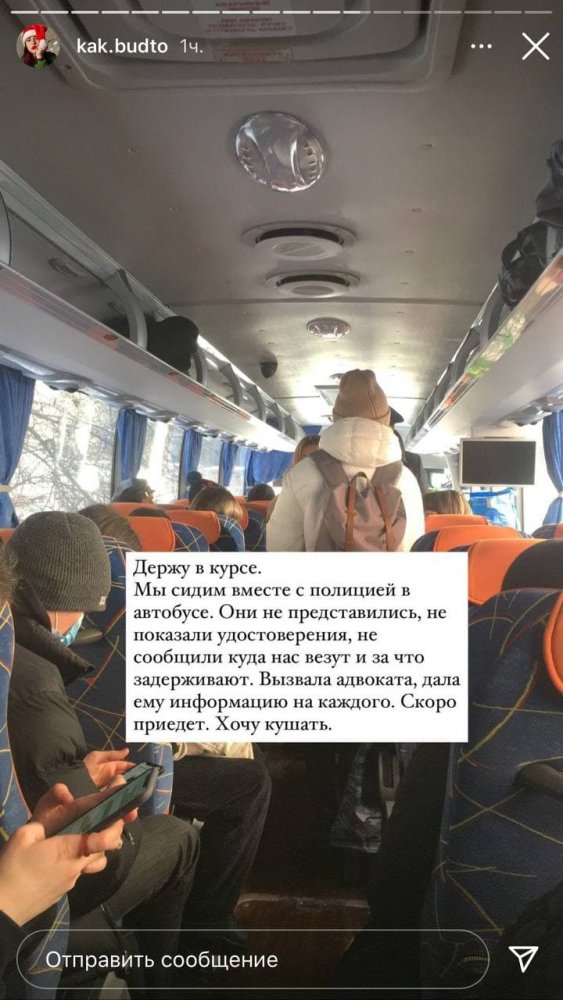 Сейчас автобус находится на территории отдела полиции по Крылатскому району. У тех людей, которых не задержали, в автобусе остались личные вещи. Полицейские сказали, что будут их изымать.