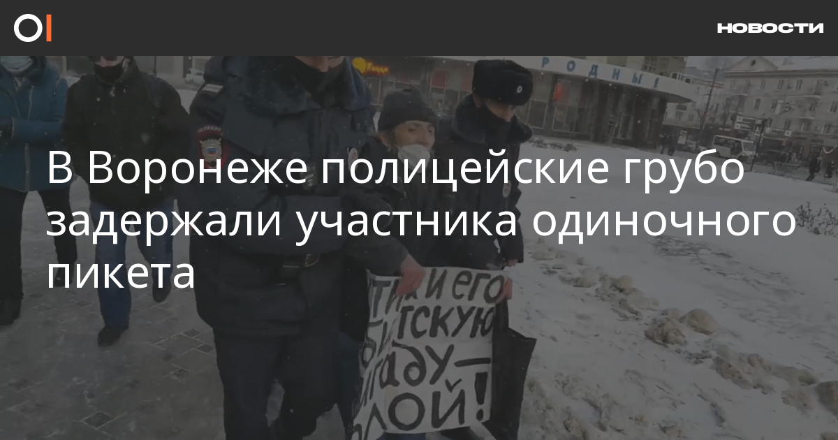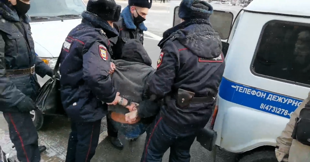 В Воронеже полицейские задержали Дмитрия Воробьевского из-за одиночного пикета с плакатом против Путина. Об этом сообщили в трансляции издания Sota, а также в разговоре с ОВД-Инфо рассказал очевидец задержания Павел Сычев.