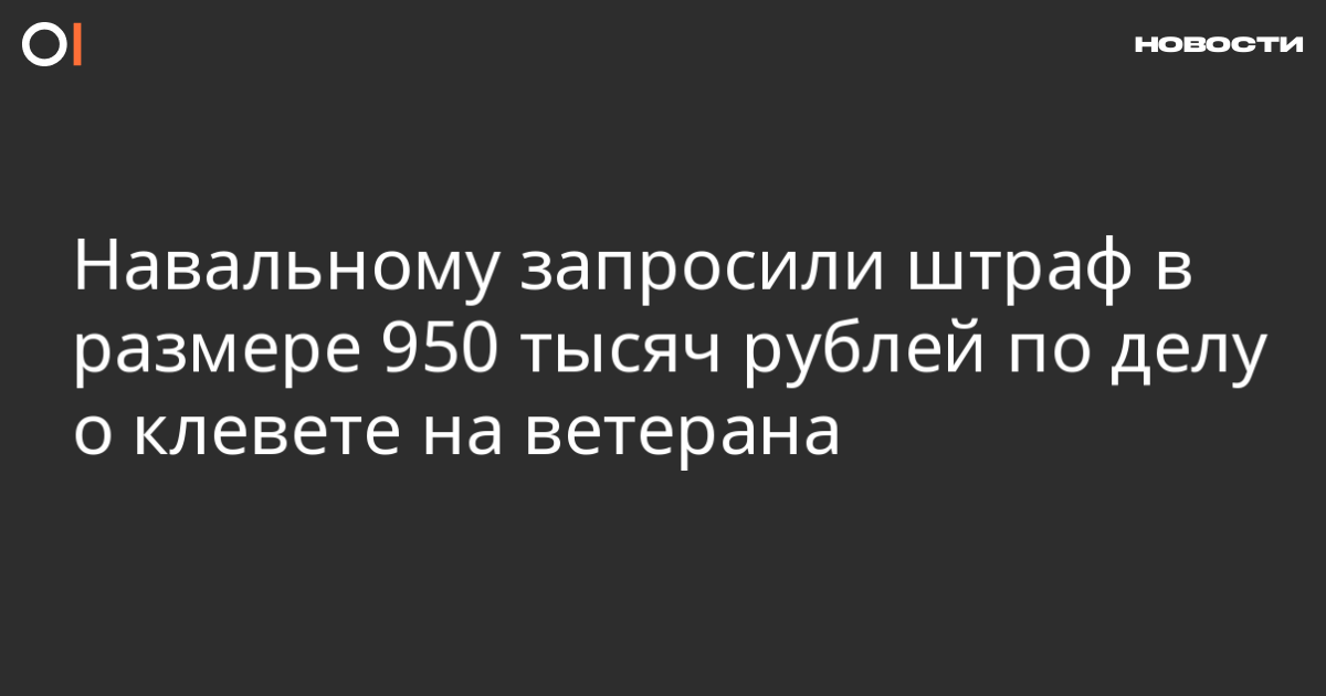 Прокурор Екатерина Фролова в ходе судебных прений запросила 950 тысяч рублей штрафа в качестве наказания для Алексея Навального по делу о клевете на ветерана, сообщает «МБХ медиа». Также с учетом неотбытой судимости по делу «Ив Роше» прокурор просит назначить 3,5 года колонии.