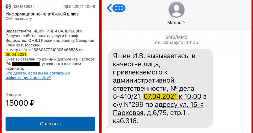 «И вот готовимся мы с адвокатом Вадимом Прохоровым, значит, к суду, который завтра утром. А сегодня вечером портал госуслуги мне сообщает: Илья Валерьевич, суд признал вас виновным, вот вам штраф 15 тысяч рублей, вот реквизиты, желаем всего хорошего», — пишет Илья Яшин.