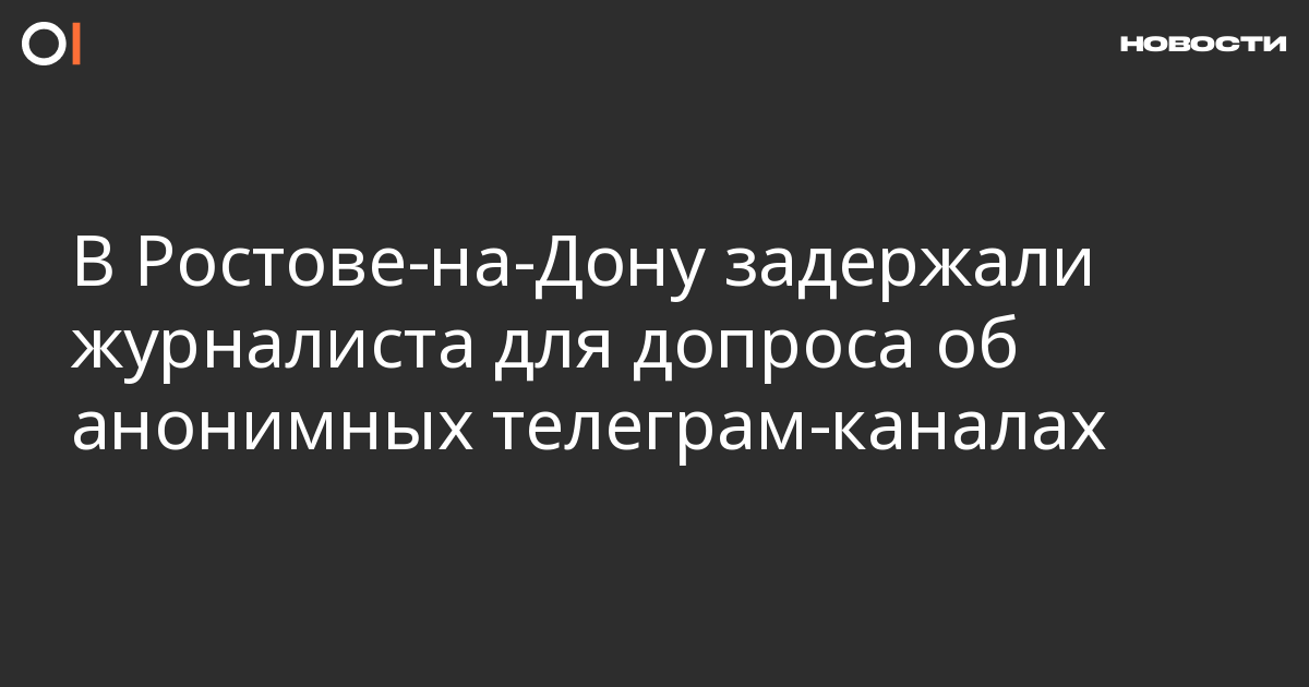 В Ростове-на-Дону задержали журналиста интернет-издания «Голос» Игоря Хорошилова по делу о местных анонимных телеграм-каналах. Об этом сообщает «Новая газета».