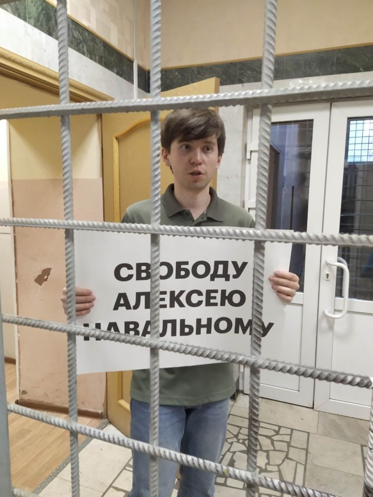 Молодой человек вышел к Гостиному двору с одиночным пикетом в поддержку Алексея Навального. Где сейчас находится Муллатагиров и что ему вменяют — неизвестно.