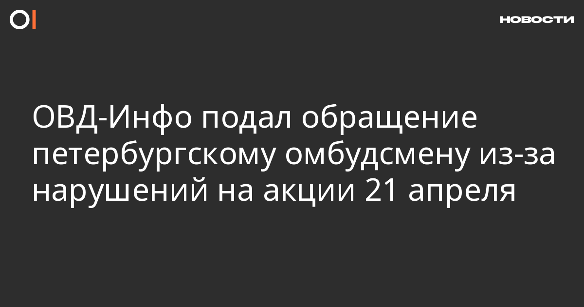 ОВД-инфо подал обращение петербургскому Уполномоченному по правам человека Александру Шишлову по поводу многочисленных нарушений на акции 21 апреля в Санкт-Петербурге.