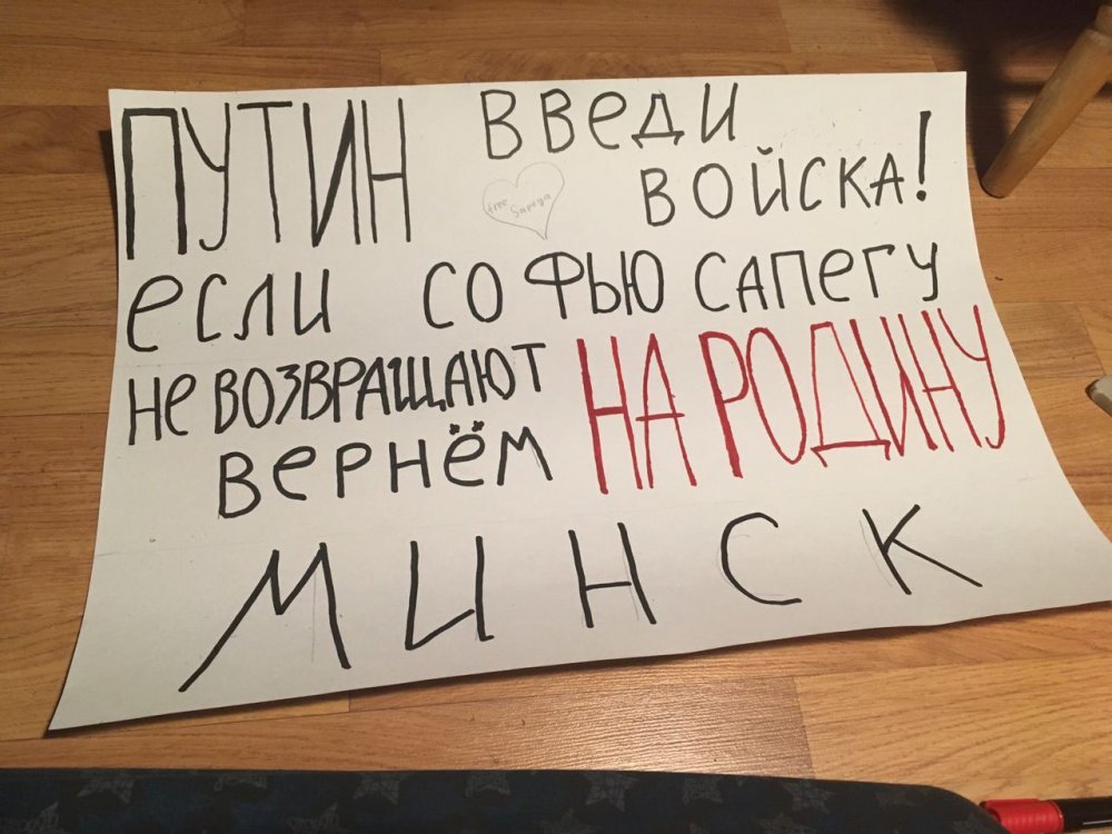 В Москве напротив посольства Беларуси задержали художника и активиста Артёма Камардина с плакатом в поддержку задержанной в Белоруссии гражданки России Софьи Сапеги. Об этом ОВД-Инфо сообщил сам задержанный.