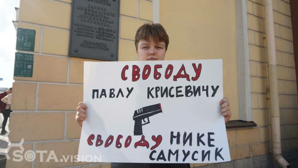 В Петербурге задержали активистку Марину-Викторию Нагорных — она вышла в одиночный пикет в поддержку акциониста Павла Крисевича и журналистки Ники Самусик.