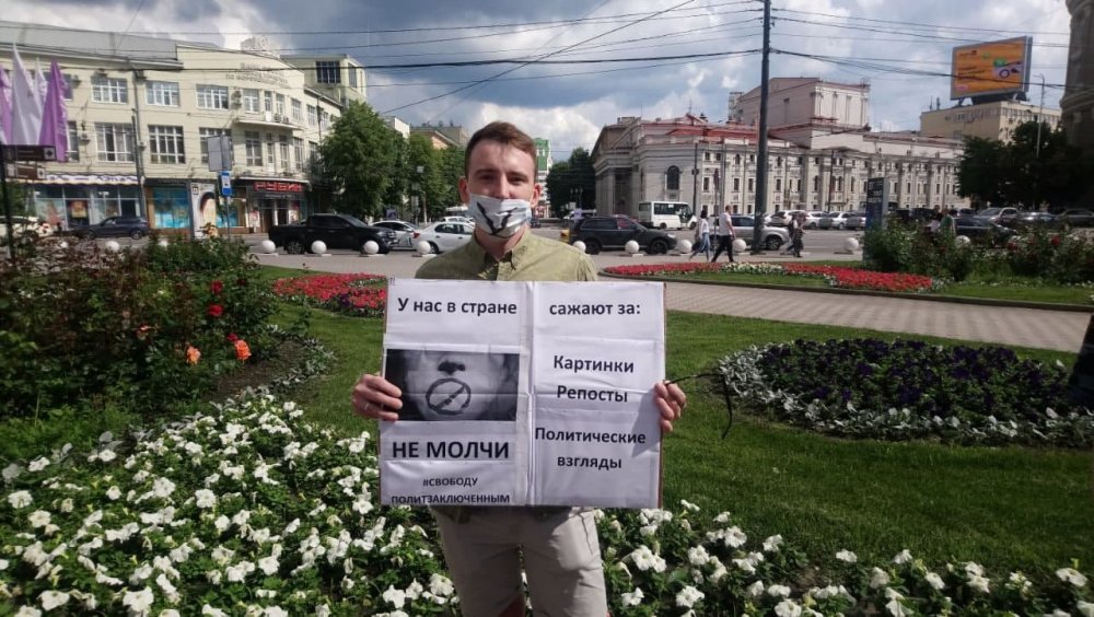 В Воронеже задержали пикетчика Максима Абрамова, который стоял с плакатом в поддержку Алексея Навального и за свободу слова. Об этом сообщает «Канал Свободные люди Воронежа».