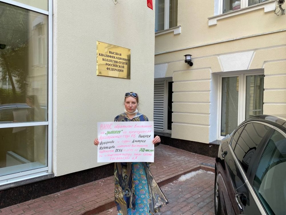 Жительницы Уфы Алла Яковлева, Марина Бикбулатова и Диана Масагутова вышли в пикеты к зданию Высшей квалификационной коллегии судей РФ. Вызванные на место росгвардейцы доставили пикетчиц в ОВД «Пресненский». Женщин отпустили из отдела, взяв объяснения.