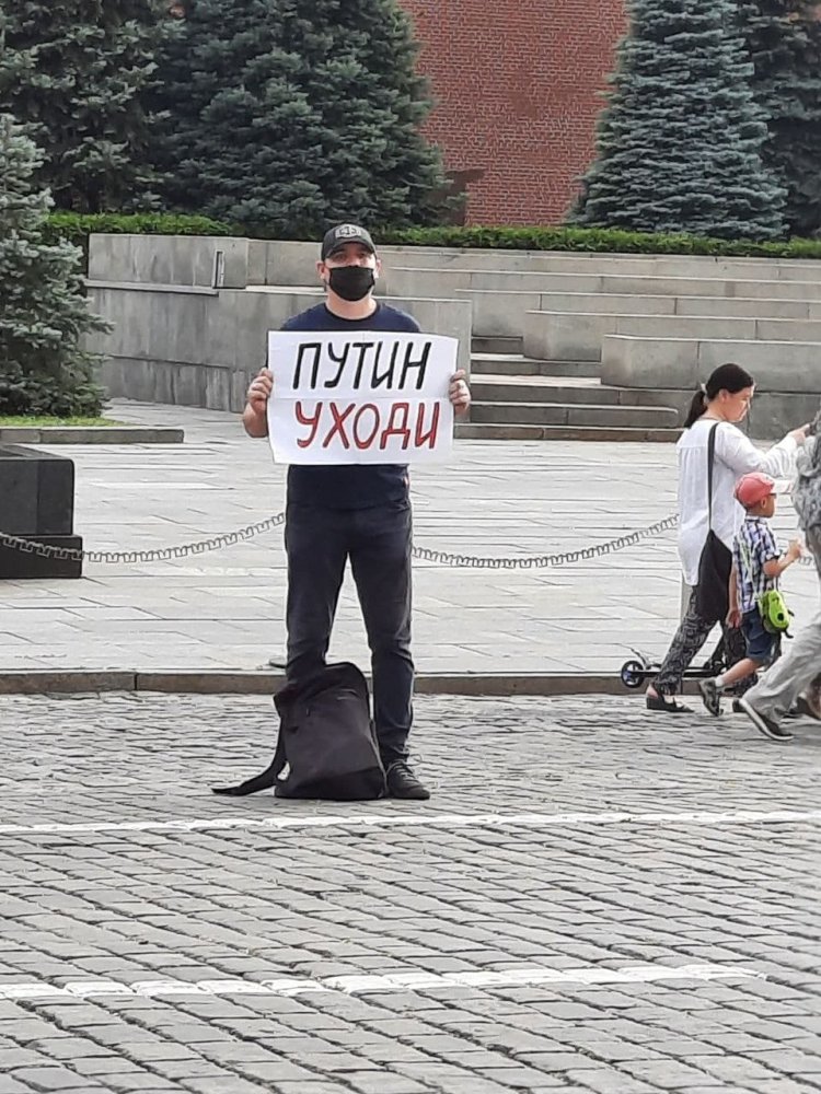 В Москве на Красной площади полиция задержала пикетчика Игоря Татарова, который стоял с плакатом против Путина. Об этом он сам сообщил ОВД-Инфо.
