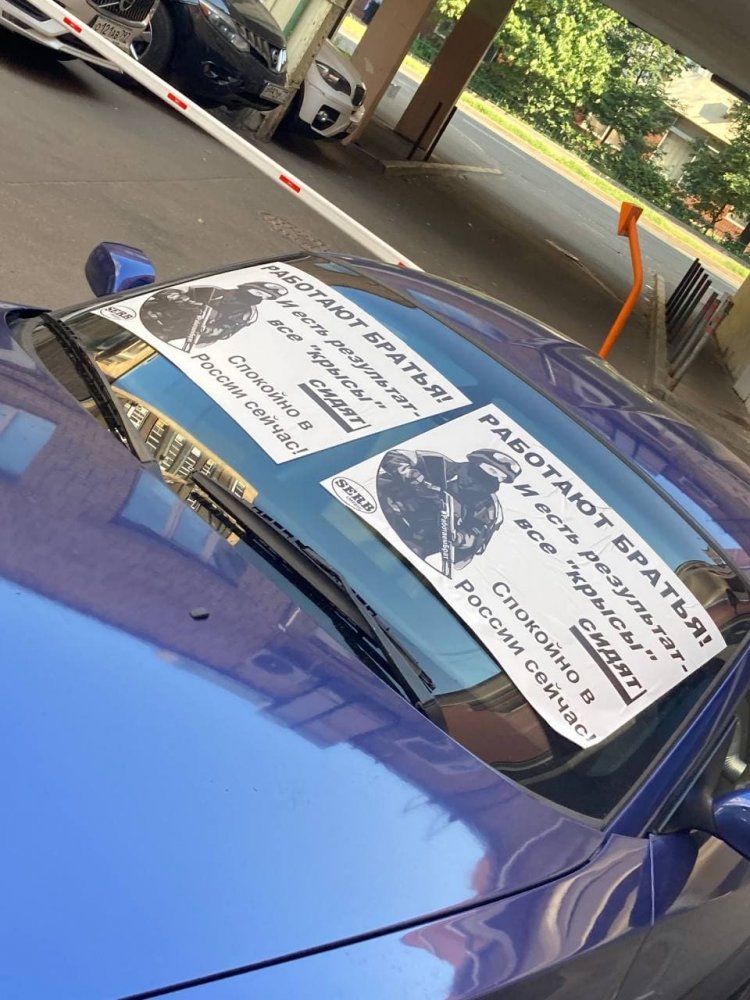 «Судя по камерам видеонаблюдения, это случилось в семь часов утра. Я пока сам видео не видел, но в ближайшее время мы, видимо, точно выясним, кто это был. Они наклеили наклейки на лобовое и заднее стекло автомобиля и спустили колеса путем выкручивания вентиля», — рассказывает Захватов.