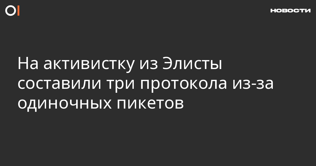 На активистку из Элисты Валентину Эрдниеву составили три административных протокола из-за проведенных ею одиночных пикетов. Об этом Эрдниева сообщила изданию «Кавказ. Реалии».