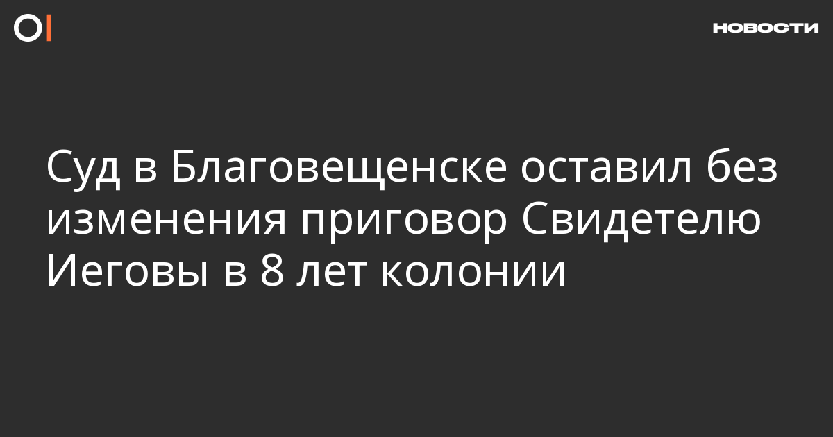 Амурский областной суд рассмотрел апелляционные жалобы Свидетелей Иеговы Дмитрия Голика и Алексея Берчука, приговоренным к 7 и 8 годам колонии соответственно. Об этом ОВД-Инфо сообщили в Европейской ассоциации Свидетелей Иеговы.