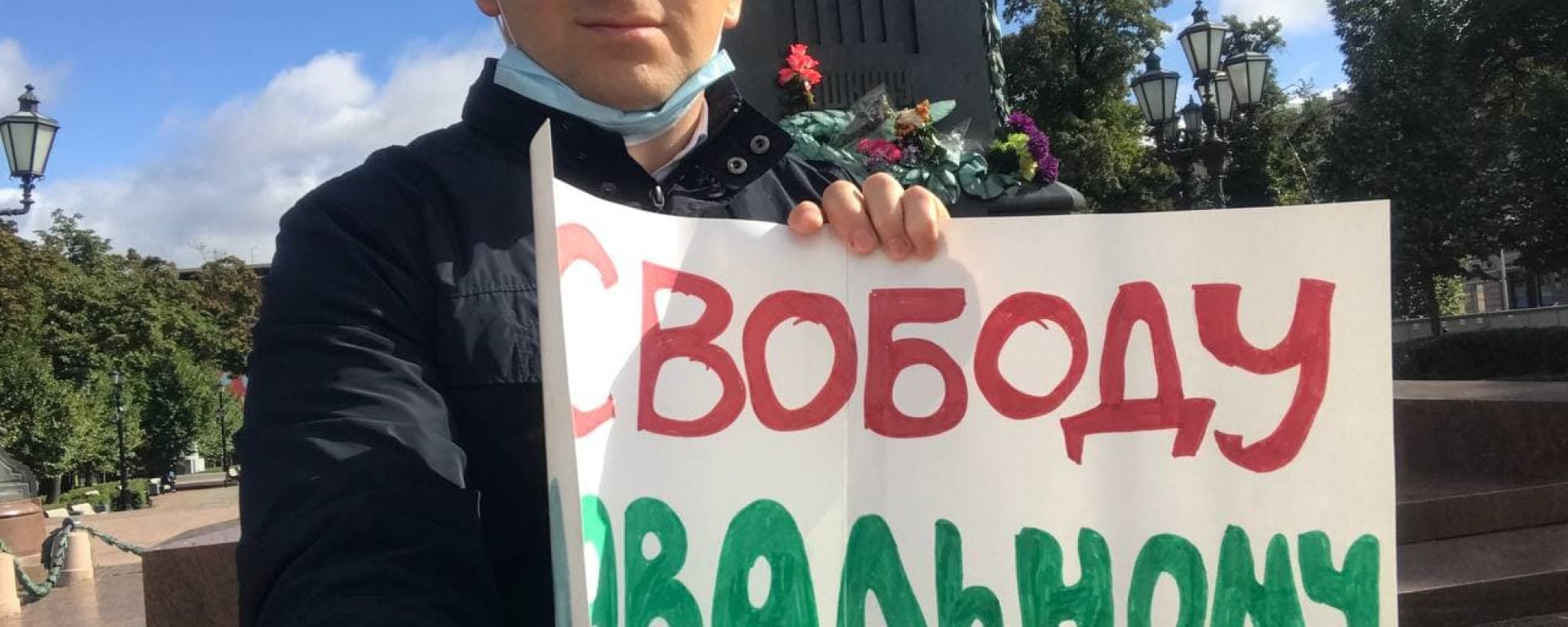 В Москве на Пушкинской площади полицейские задержали одиночного пикетчика Мубарака Муталибова. Он стоял с плакатом с требованием освободить Навального и других политзаключенных. Об этом он сам сообщил ОВД-Инфо.