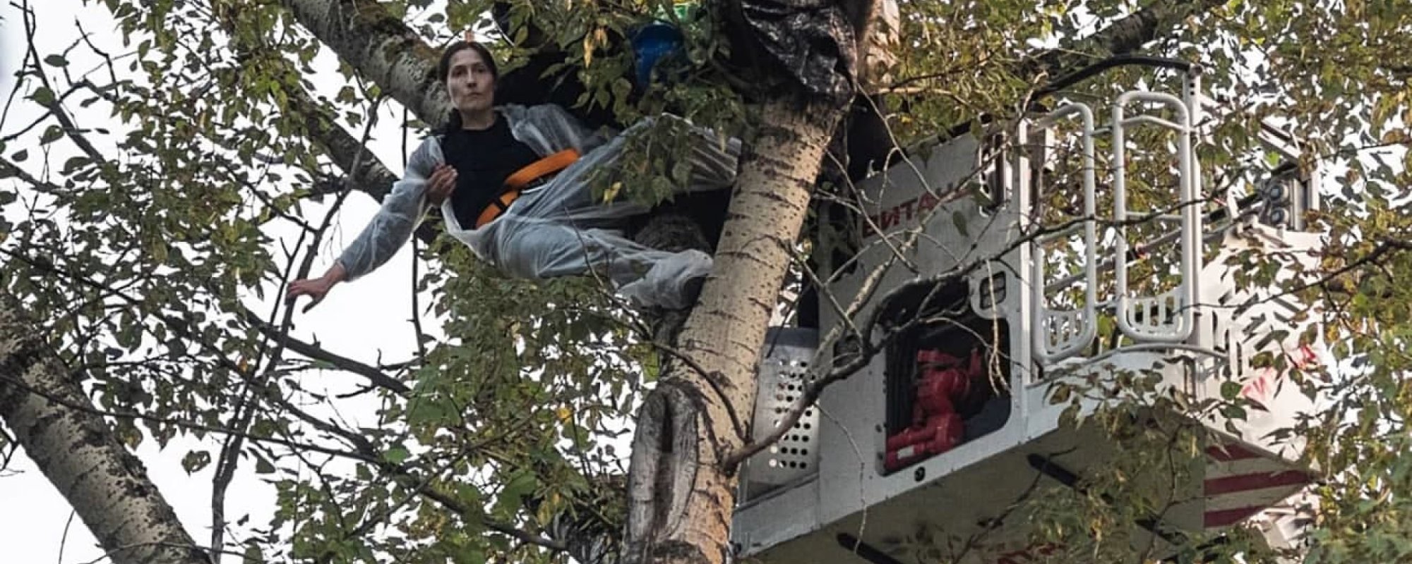 Дело против активистки возбудили из-за акции 9 августа — в тот день она залезла на дерево и таким образом требовала прекратить стройку по адресу Янтарная улица, 15. У женщины при себе был арбалет, которым она хотела защититься в случае, если ее захотят насильно снять с дерева.