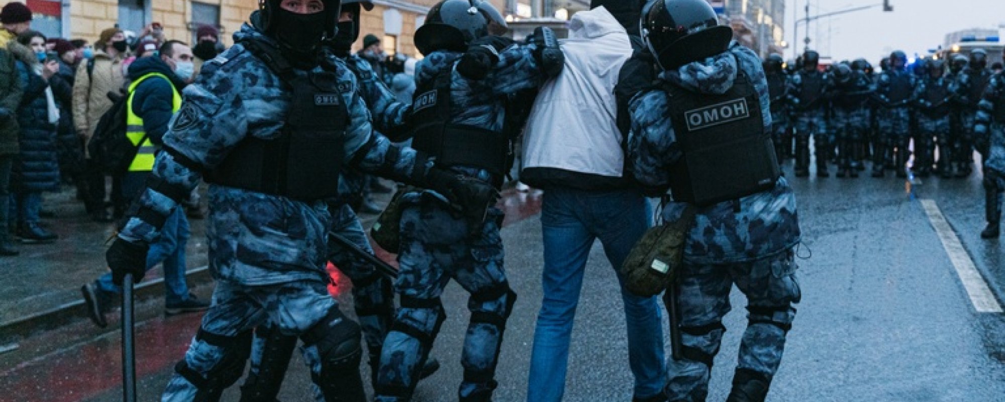 • После ареста политика Алексея Навального по всей России прошла серия протестов, массовые акции состоялись в субботу 23 января, в воскресенье 31 января и 2 февраля (в день замены условного срока Навального на реальный). Силовики жестко реагировали на акции протеста: 23 января задержали более 4000 человек, 31 января — более 5500, а 2 февраля — более 1400 человек. Аналогичные акции прошли также 21 апреля, после того, как Навальный был отправлен в колонию и стало известно, что к нему не пускают врачей. Полиция задержала более 2100 человек.