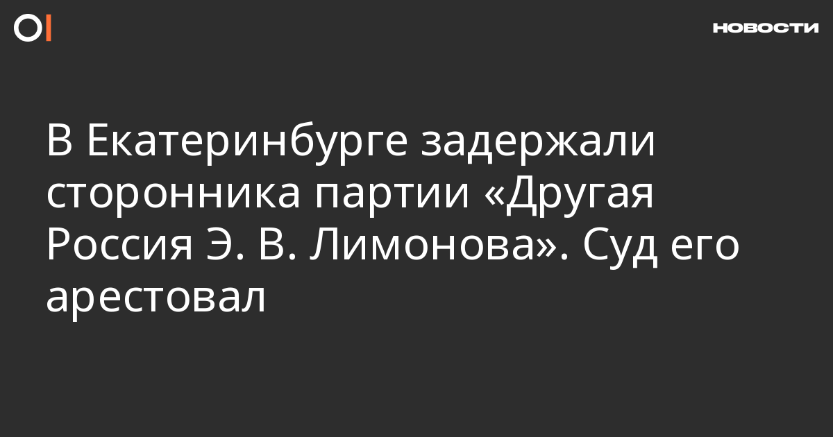 В Екатеринбурге полиция задержала сторонника партии «Другая Россия Э. В. Лимонова» Никиту Баянова. Об этом сообщает юрист Андрей Щукин, сотрудничающий с ОВД-Инфо.