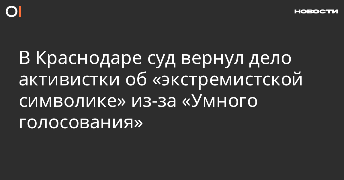 В Краснодаре мировой судья отказался рассматривать дело о распространении «экстремистской символики» (ч. 1 ст. 20.3 КоАП), возбужденное в отношении активистки Алипат Султанбеговой из-за истории в инстаграме со ссылкой на список «Умного голосования». Об этом сообщает SOTA.