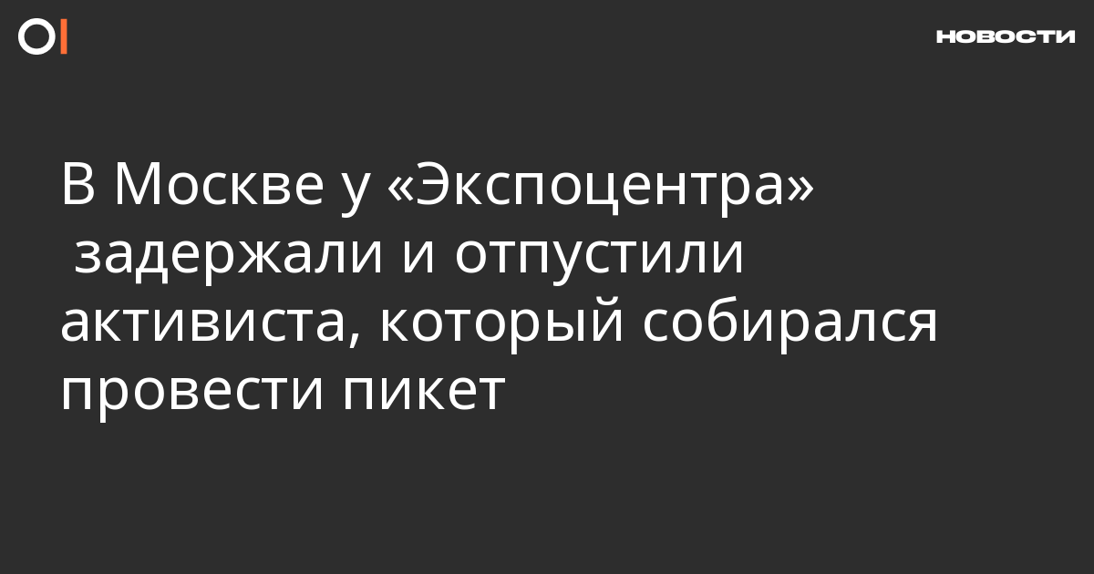 В Москве у выставочного комплекса «Экспоцентр» задержали и отпустили активиста Александра Римова, который собирался провести там одиночный пикет. О произошедшем ОВД-Инфо рассказал товарищ и помощник задержанного Максим.