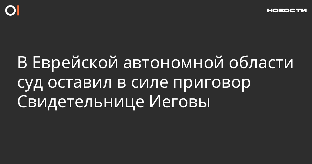 16 декабря суд Еврейской автономной области оставил без изменений приговор Свидетельнице Иеговы Татьяне Шольнер. Об этом сообщает Информационно-аналитический центр «Сова».