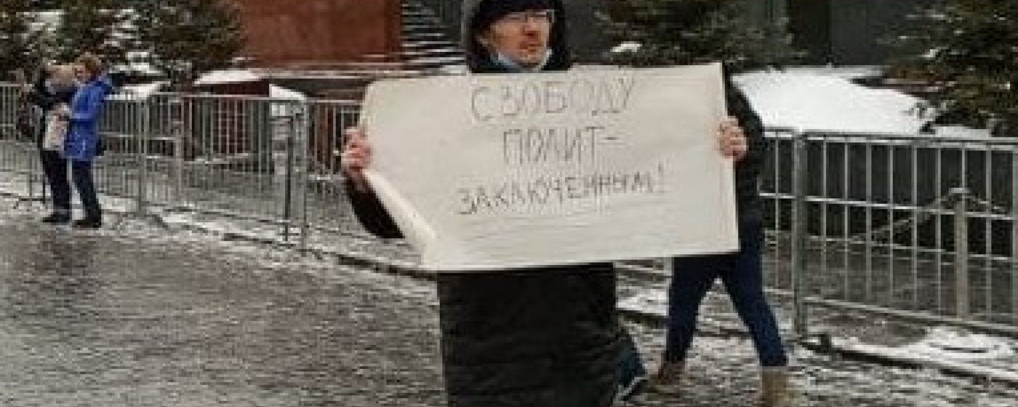 На Красной площади задержали Ильдуса Манякова, стоявшего в одиночном пикете с плакатом «Свободу политзаключенным». Об этом ОВД-Инфо сообщил сам задержанный.