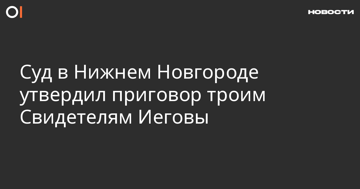 Нижегородский областной суд оставил в силе приговор троим Свидетелям Иеговы, — Алексею Орешкову, Александру Раковскому и Александру Вавилову, — которым ранее назначили по три года условно. Об этом ОВД-Инфо сообщили в пресс-службе Европейской ассоциации Свидетелей Иеговы.