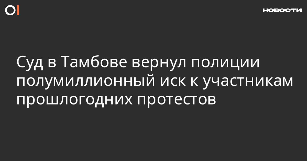 Ленинский районный суд Тамбова вернул без рассмотрения по существу иск МВД к местным активистам о компенсации 472 299 рублей, якобы потраченных в связи с работой на протестных акциях в январе и апреле 2021 года в поддержку Алексея Навального. Об этом сообщается на сайте суда.