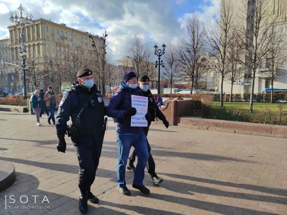 Георгий Иванов и еще пять человек 23 октября провели на Пушкинской площади одиночные пикеты на различные темы: в поддержку политзаключенных и независимых СМИ, против преследования по статьям об экстремизме и против результатов электронного голосования. Их задержали и доставили в отдел полиции «Тверской» для составления протоколов.